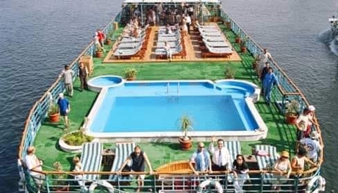 وأيضا يمكنك قضاء يوم كامل على متن الفندق العائم || والتمتع بالصن ديك وحمام السباحة للكبار وأخر